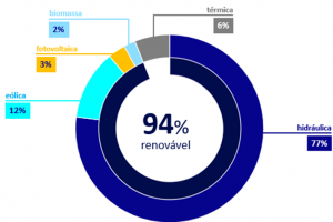 O Brasil produziu quase 70 mil megawatts médios nos primeiros meses desse ano e 94% dessa energia elétrica foram geradas por fontes renováveis. Segundo levantamento da Câmara de Comercialização de Energia Elétrica — CCEE, este é o maior índice de participação de energia limpa na matriz energética do país nos últimos 10 anos. A maior parte foi gerada pelas hidrelétricas (77%), seguidas das usinas eólicas (12%), solares (3%) e biomassa (2%).