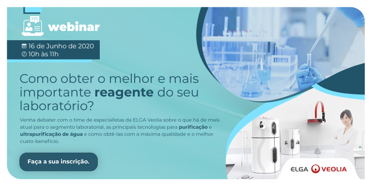 A Veolia Water Technologies, por meio da sua marca ELGA LabWater, realizará no dia 16 de Junho de 2020, das 10h às 11h o webinar que debate as diversas aplicações e tecnologias de purificação e ultrapurificação de água.