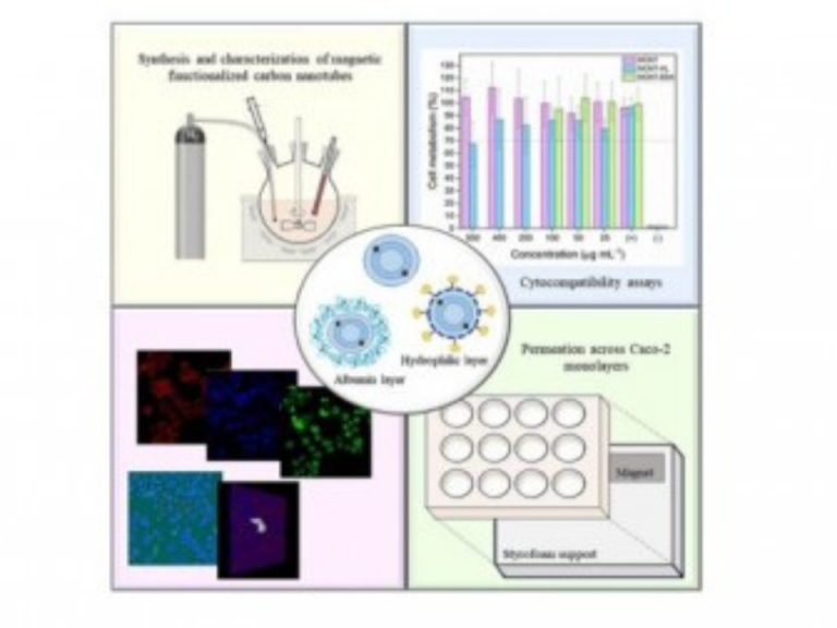 Os resultados mostraram que M-CNTs possuem citotoxicidade moderada, mantendo a integridade celular, e que podem permear através da membrana biomimética com e sem o uso de um campo magnético externo. Os M-CNTs funcionalizados na superfície foram eficazes na prevenção da indução do processo necrótico em células Caco-2 (linhagem utilizada como modelo in vitro para imitar o intestino delgado em estudos de transporte de fármacos; permitem estudar a permeação intestinal para a triagem de excipientes em formulações de medicamentos), mostrando-se favoráveis à permeação.