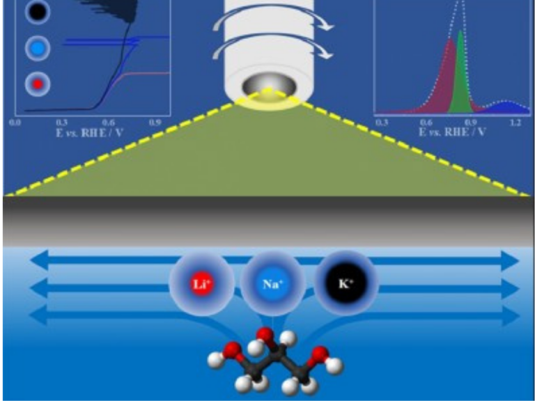 No primeiro trabalho, publicado na revista Electrochimica Acta em 2021, os autores estudaram em detalhe a eletroxidação do glicerol em sistemas com diferentes eletrólitos alcalinos.