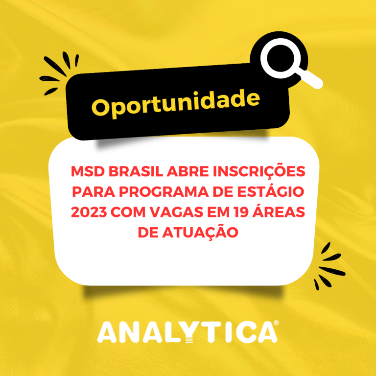 Universitários de Administração, Economia, Farmácia e outros 16 cursos, com formação entre dezembro de 2024 e agosto de 2025, podem se inscrever na 6ª edição do Programa de Estágio MSD Brasil. Ao todo, são 28 vagas para as divisões de saúde humana e animal, com inscrições até 17 de maio pelo link.