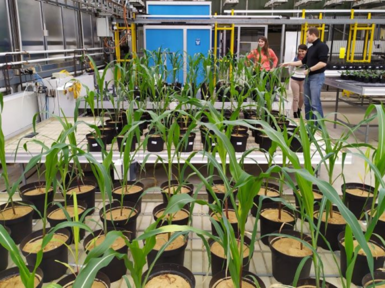 Imagem – Em experimento conduzido na Embrapa, milho adubado com o novo composto e o que recebeu fonte natural de fósforo produziram 60% mais matéria seca do que o cultivo sem nenhum fertilizante. No que recebeu adubo comercial, aumento foi de 30% (foto: Cauê Ribeiro/Embrapa Instrumentação)