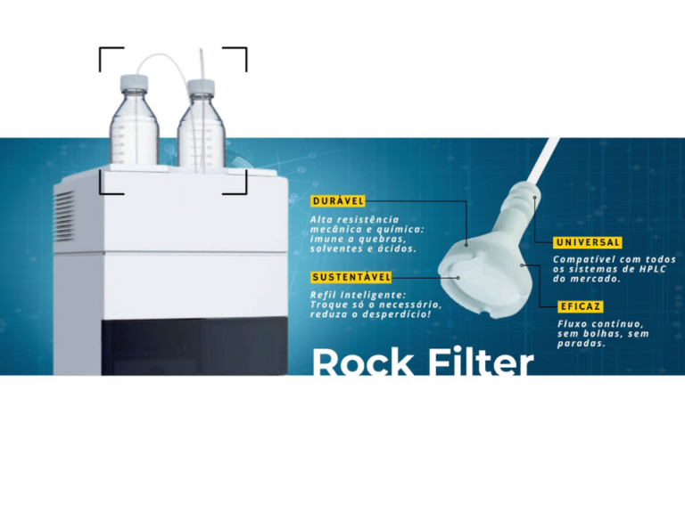 Diante desses desafios, a Rockwheel Soluções Científicas desenvolveu o Rock Filter, o estágio máximo de evolução para filtros de fase móvel em HPLC. Com um conceito inovador de refil, alia sustentabilidade, economia e alto desempenho analítico. Disponível nas opções de 20 e 10 microns, garante máxima eficiência, além de resistência química e mecânica, atendendo tanto à filtração em HPLC quanto em UPLC.