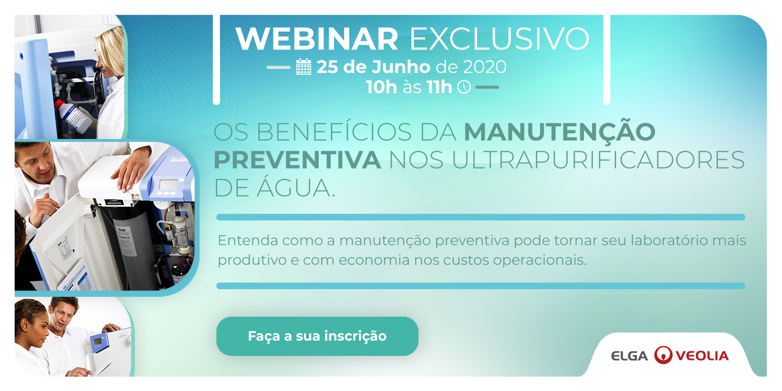 A Veolia Water Technologies, por meio da sua marca ELGA LabWater, realizará no dia 25 de Junho de 2020, das 10h às 11h o webinar que debate os benefícios da manutenção preventiva nos ultrapurificadores de água.