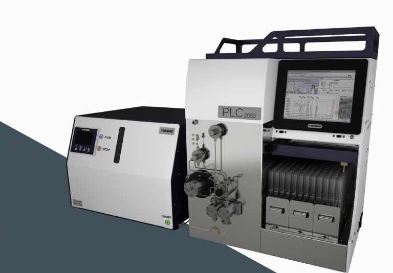 Além da redução de custos e economia de tempo, os produtores necessitam um método de alto rendimento que fornece um produto ultrapuro e com alta taxa de recuperação. Para demonstrar os benefícios do CBD purificado por CPC, 5 g de extrato cru de cânhamo foram injetados num CPC 250 PRO e num sistema de purificação PLC 2250 da Gilson (Figura 2). Usando este método de etapa única, foram obtidos 205 mg de CBD com pureza superior a 99%, determinada por análise em HPLC.